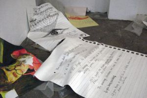 „Blow in" jest wyrażeniem australijskim, określającym kogoś, kto przyjeżdża gdzieś bez szczególnej przyczyny i może z równie niewyjaśnionych powodów stamtąd wyjechać. Kim Donaldson przyjeżdża do Polski po raz drugi. Tu również jest "blow in". Przez tę wystawę to, co pozostało z jej przeszłości, tworzy nową teraźniejszość. Olbrzymie fragmenty, składające się z farby i płótna, zderzają się na podłodze galerii, jak śmieci, których nawiało z ulicy i które zebrały się w jej kącie. Są wśród nich zdjęcie i rysunek na skrawku papieru z jej poprzedniej wizyty w Warszawie, a z Australii – notatka, zapisana pośpiesznie przy telefonie u znajomych, coś znalezionego na ulicy i kilka innych rzeczy, zebranych po drodze.