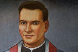 Obraz olejny na płótnie, 210x113 cm, mal. Wojciech Kotlewski, 10.06.2016. Obraz powstał na zamówienie i został ufundowany przez Stowarzyszenie Artystów fabs z okazji 40. rocznicy śmierci ks. Józefa Kurzei